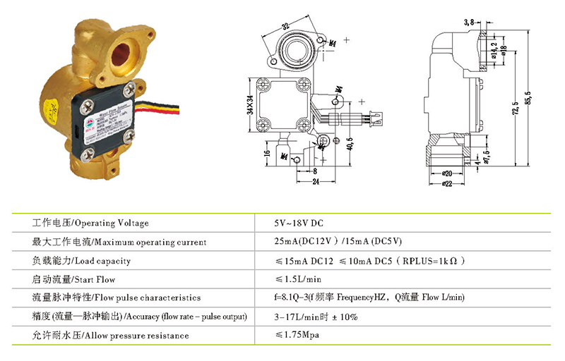 记忆合金水流量传感器系列